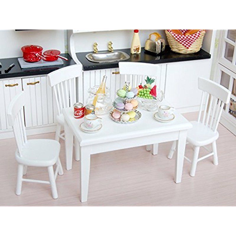 5pcs Table Chairs Set Wooden Kitchen For 1 12 Barbie Dollhouse
