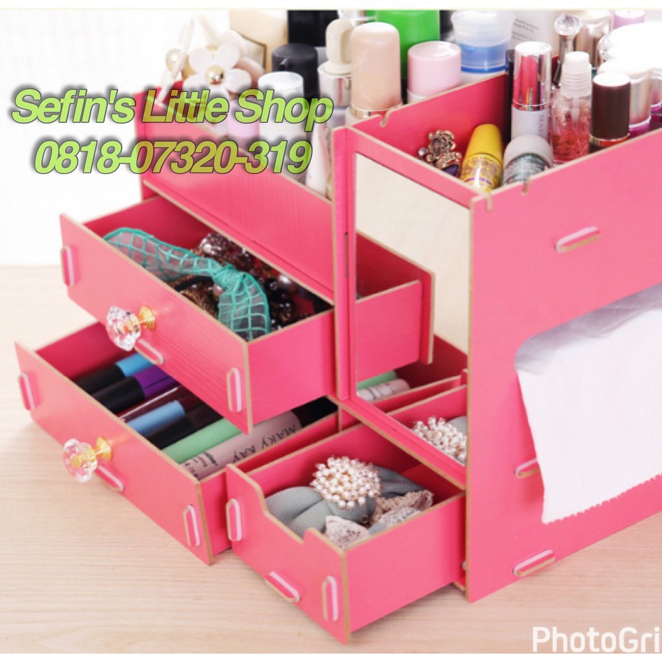 Tempat Rak Kosmetik Diy Desktop Storage Dengan Cermin Kaca