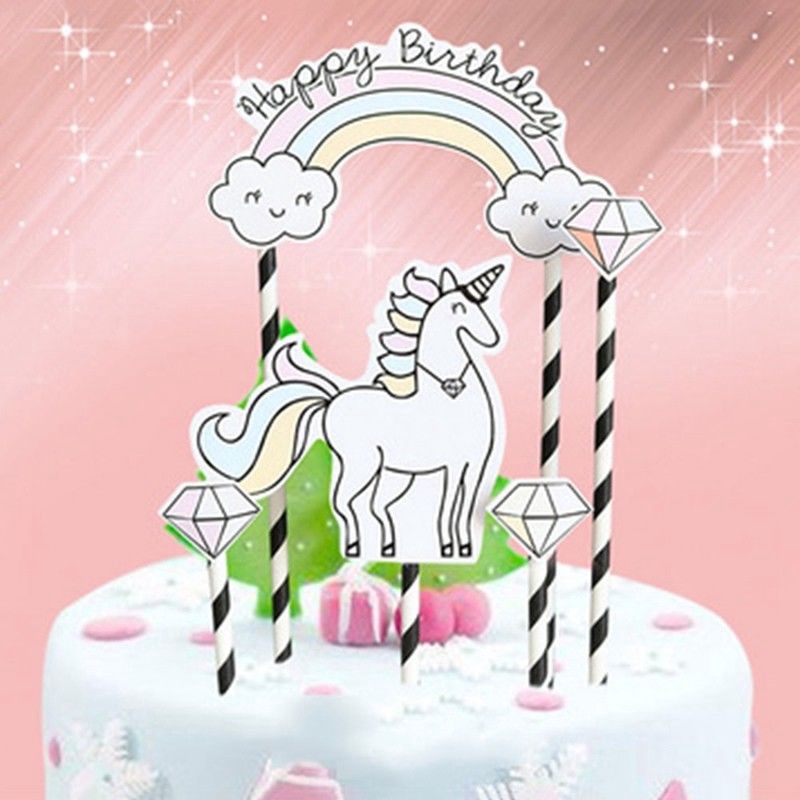 Lovely Unicorn Cake Topper Birthday Home Party Card Wedding Diy
